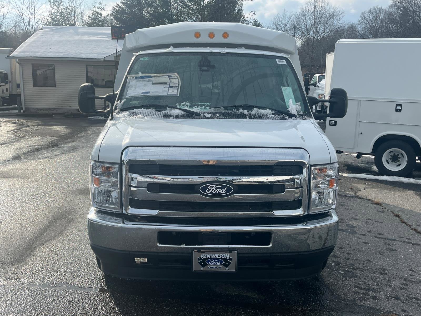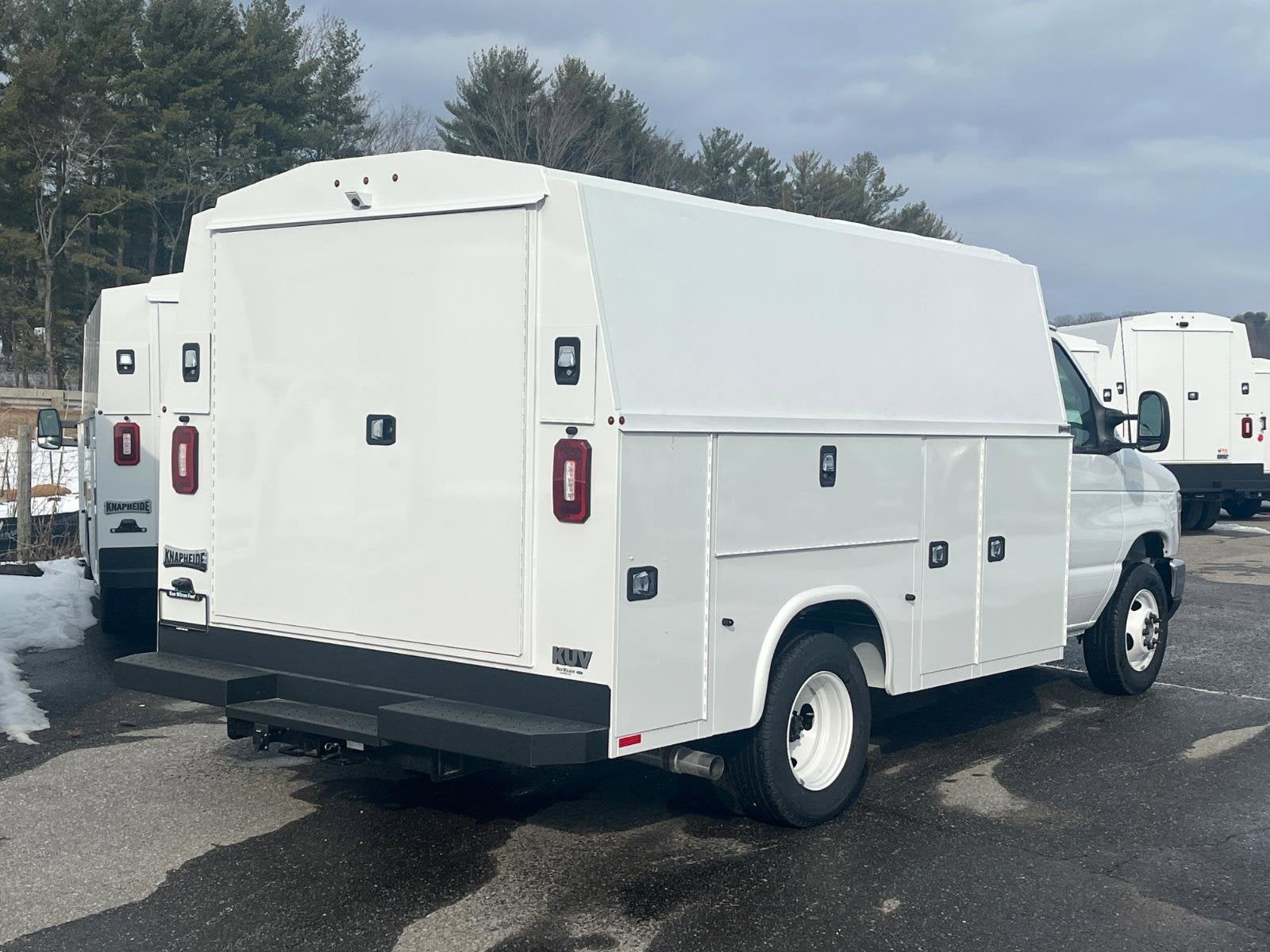 Oxford White 2026 Ford E-350SD Cutaway RWD 6-Speed Automatic with Overdrive 7.3L V8 **KNAHEIDE LOW ROOF KUV**, 110V Power Inverter, Chrome Grille, Class I Trailer Towing Package, Front Chrome Bumper, High Series Exterior Upgrade Package, Order Code 780A, Power Equipment Group, Remote Keyless Entry, SecuriLock Passive Anti-Theft System (ePATS).