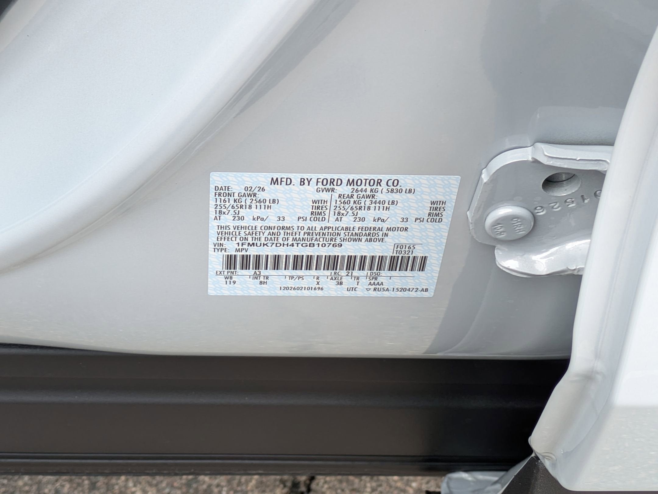 - Tires: P255/65R18 AS BSW