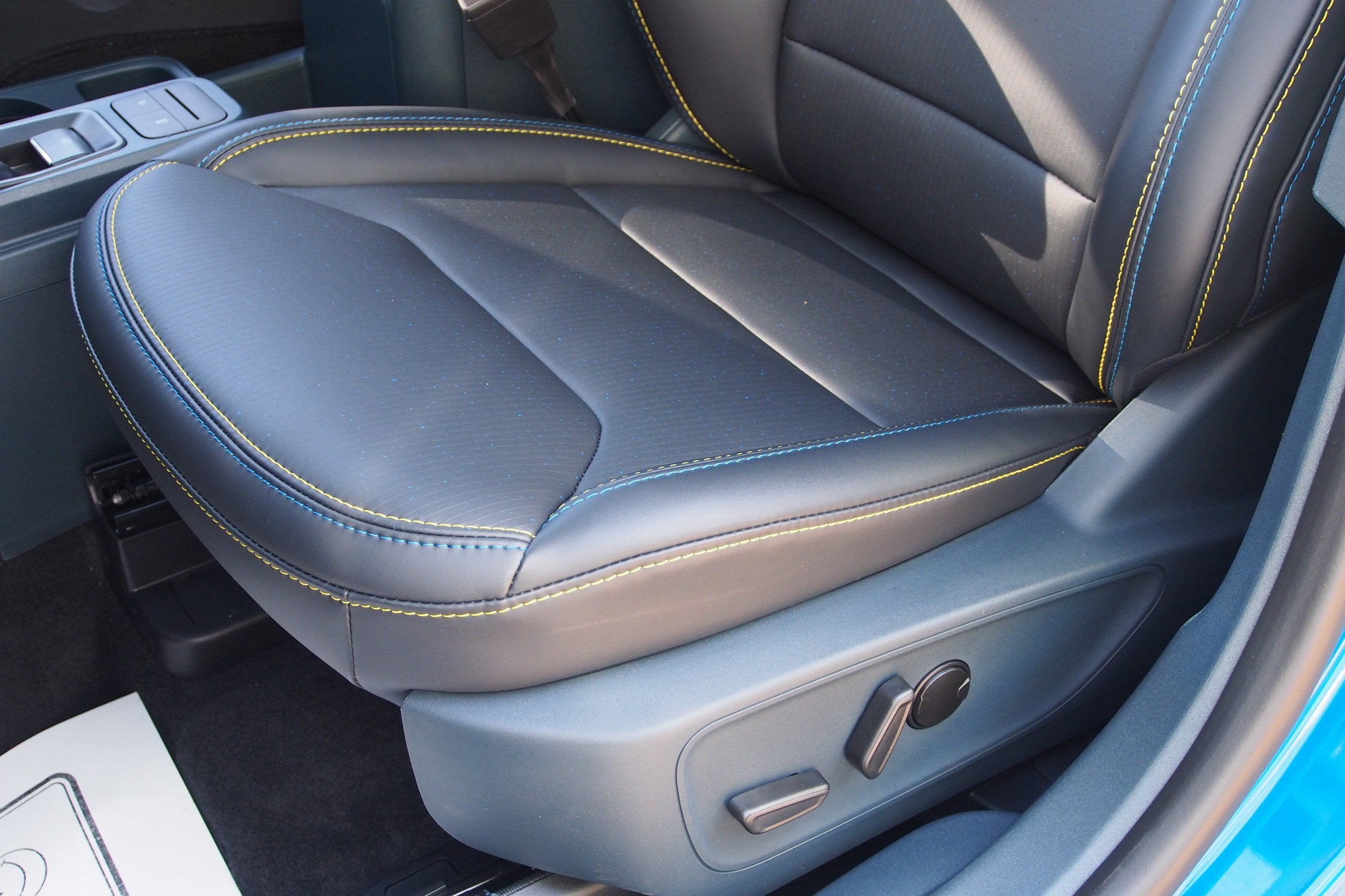 - ActiveX Trimmed Front Bucket Seats -inc: grabber blue and electric lime stitching and logo accents, 8-way power driver w/power lumbar and 6-way manual passenger, front floor console w/eShifter, armrest and storage bin