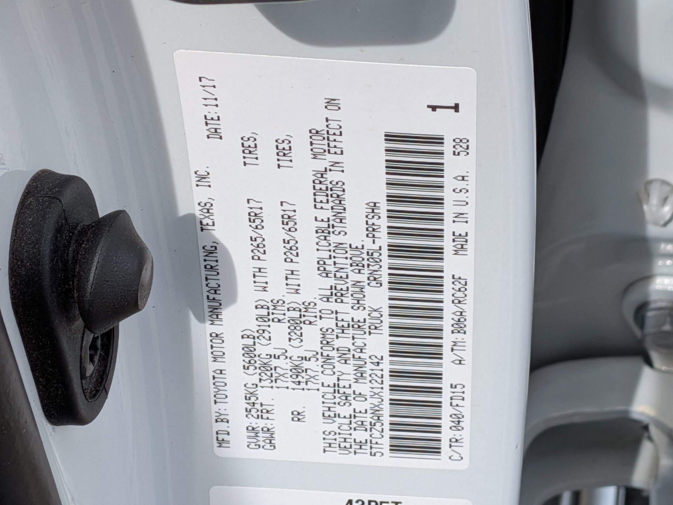 - Front Tire Size: P265/65SR17
