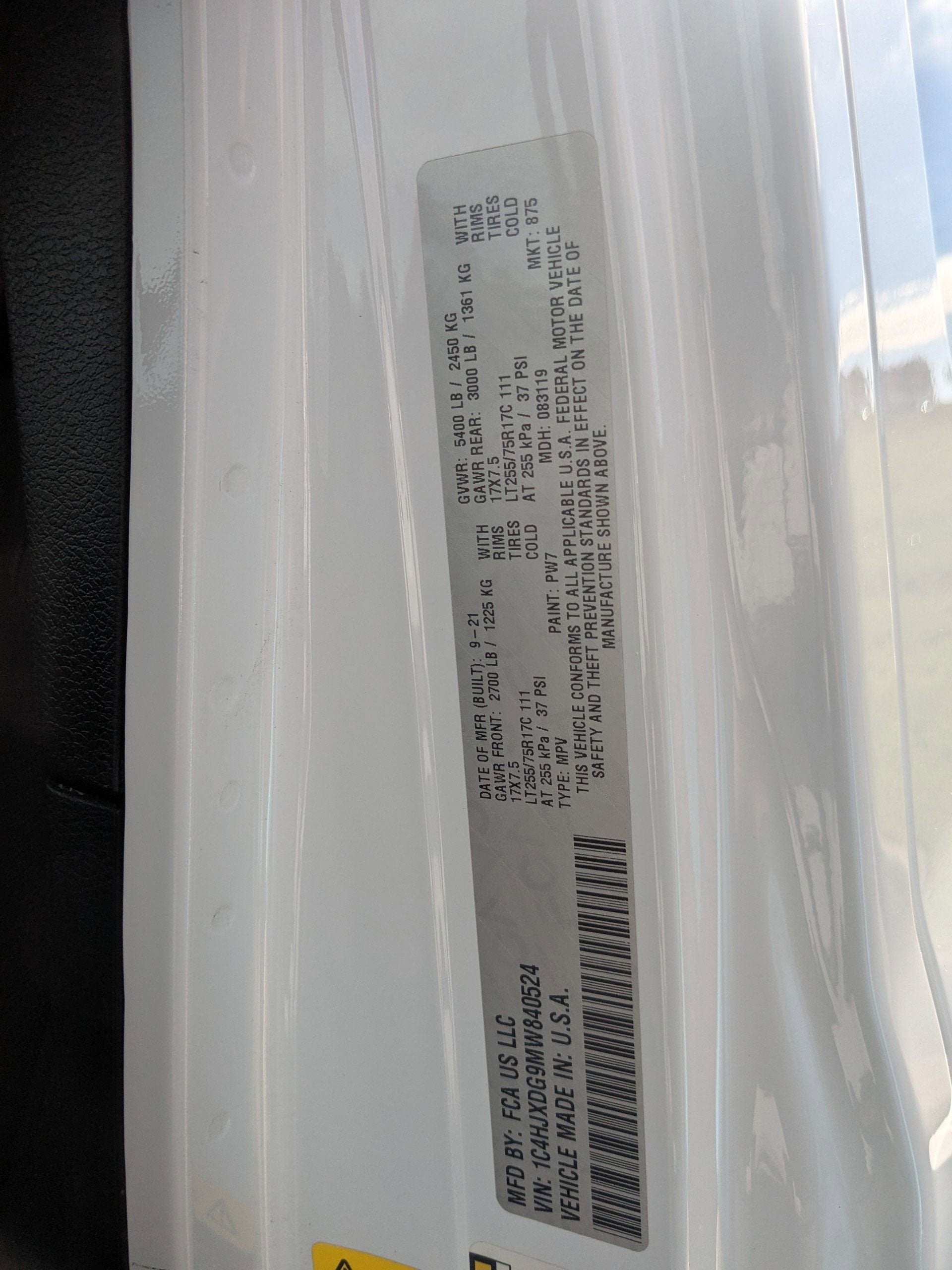 - Gross Vehicle Weight Rating Cap (lbs): 5400