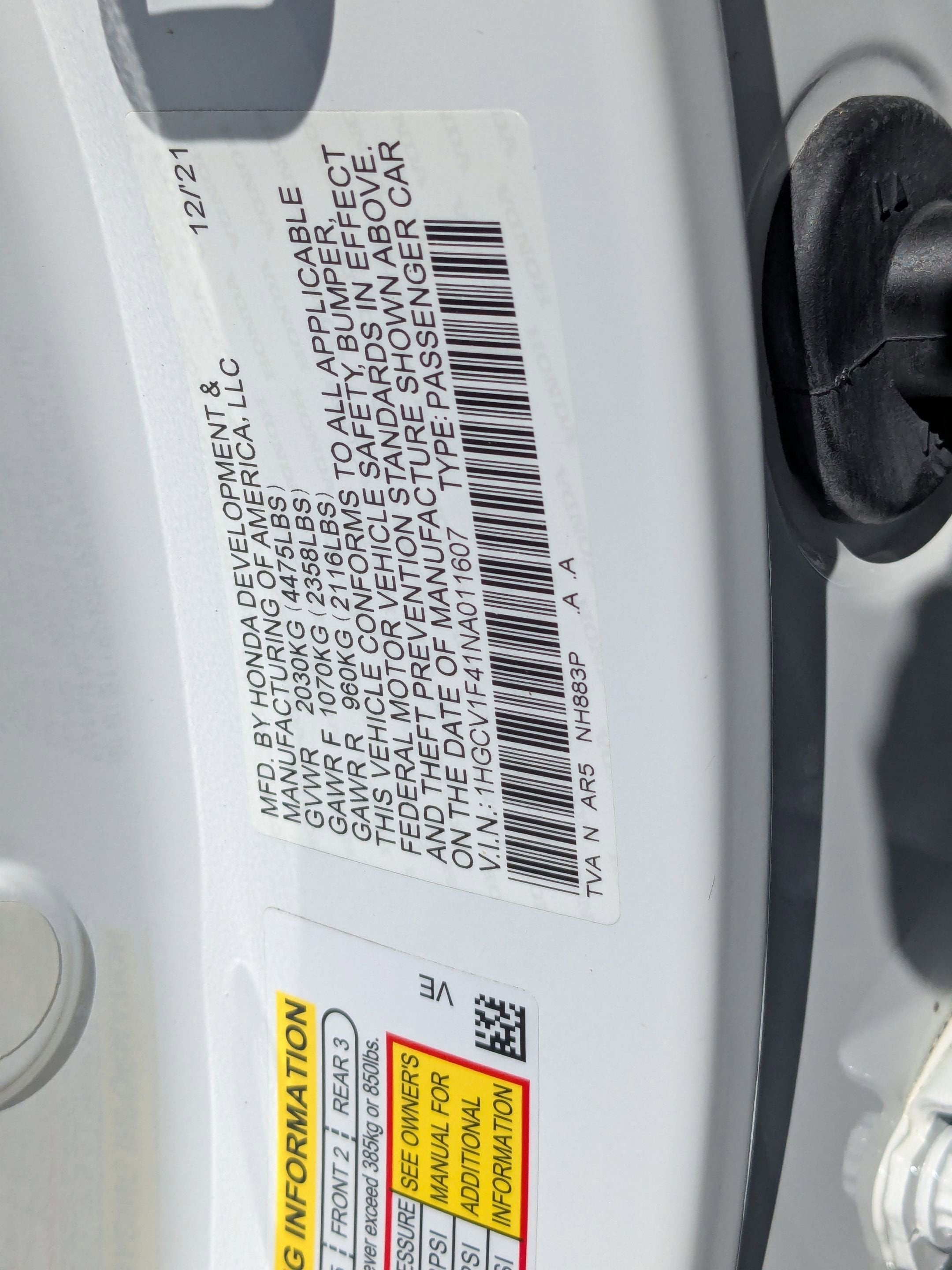2022 Honda Accord Sport Special Edition Leather, 4-Wheel Disc Brakes, 8 Speakers, ABS brakes, Adaptive Cruise Control: Adaptive Cruise Control (ACC) with Low-Speed Follow, Air Conditioning, Alloy wheels, AM/FM radio, Apple CarPlay/Android Auto, Auto High-beam Headlights, Automatic temperature control, Brake assist, Bumpers: body-color, Delay-off headlights, Driver door bin, Driver vanity mirror, Dual front impact airbags, Dual front side impact airbags, Electronic Stability Control, Emergency communication system: HondaLink, Exterior Parking Camera Rear, Forward collision: Collision Mitigation Braking System (CMBS) + FCW mitigation, Four wheel independent suspension, Front anti-roll bar, Front Bucket Seats, Front Center Armrest, Front dual zone A/C, Front fog lights, Front reading lights, Fully automatic headlights, Heated door mirrors, Heated Front Bucket Seats, Heated front seats, Illuminated entry, Knee airbag, Lane Departure Warning System, Leather Shift Knob, Leather steering wheel, Low tire pressure warning, Occupant sensing airbag, Outside temperature display, Overhead airbag, Overhead console, Panic alarm, Passenger door bin, Passenger vanity mirror, Perforated Leather Seat Trim, Power door mirrors, Power driver seat, Power passenger seat, Power steering, Power windows, Radio data system, Radio: 180-Watt AM/FM Audio System, Rear anti-roll bar, Rear seat center armrest, Rear window defroster, Remote keyless entry, Security system, Speed control, Speed-sensing steering, Speed-Sensitive Wipers, Split folding rear seat, Spoiler, Steering wheel mounted audio controls, Tachometer, Telescoping steering wheel, Tilt steering wheel, Traction control, Trip computer, Variably intermittent wipers, Wheels: 19" Machine-Finished Alloy w/Black Inserts, Leather. Sport Special Edition