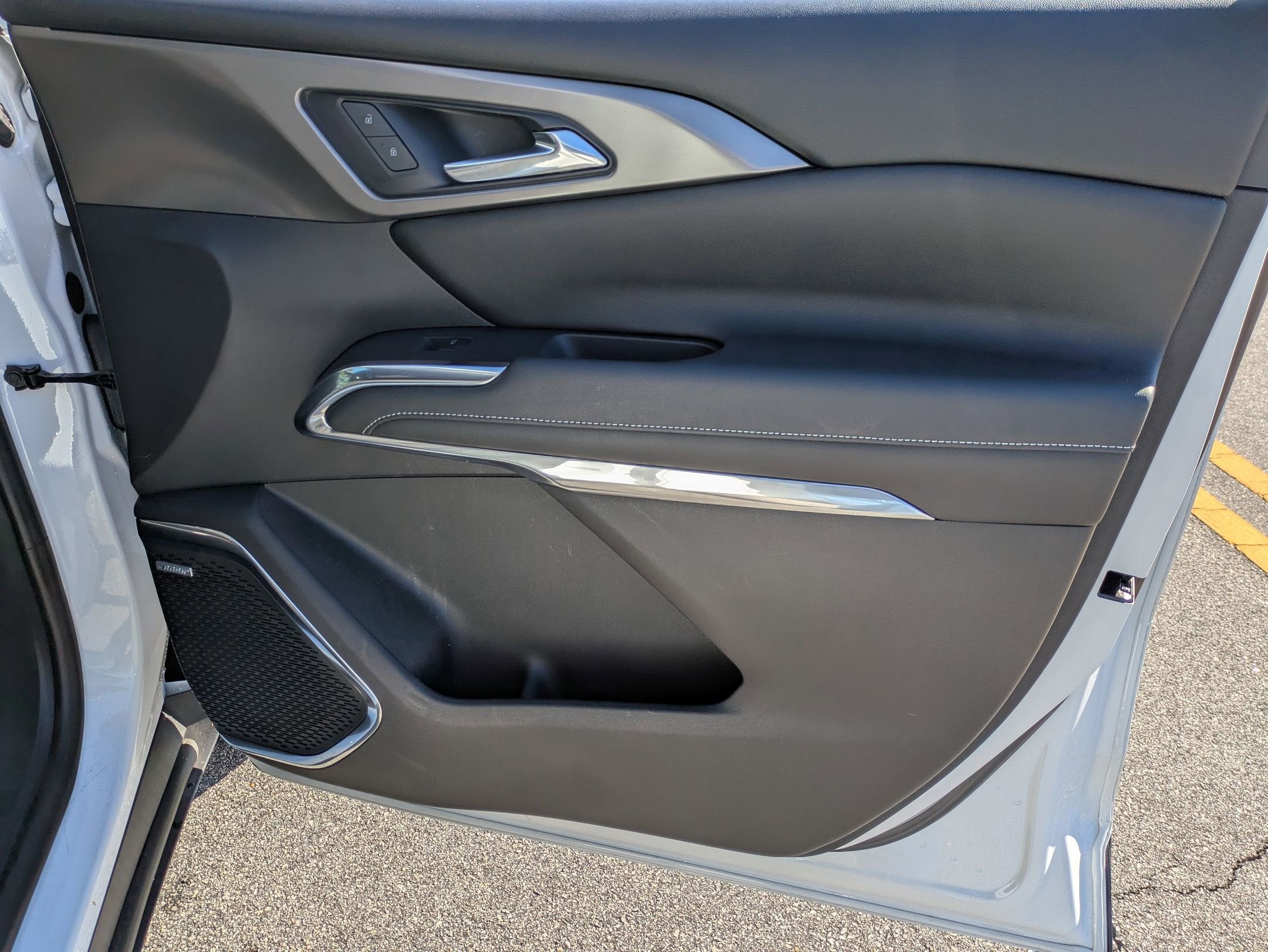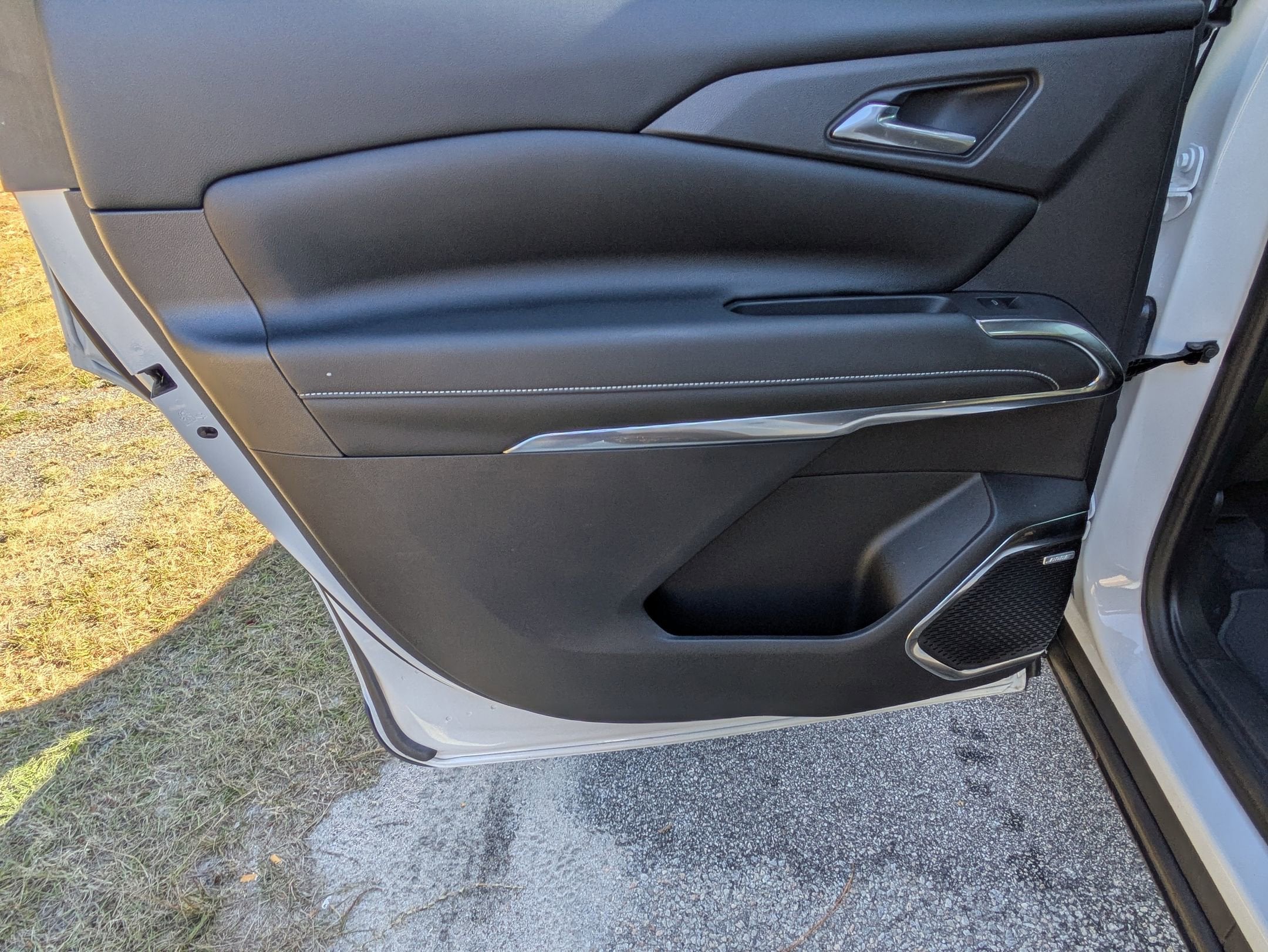 - Molding, bright door upper and low gloss Black belt