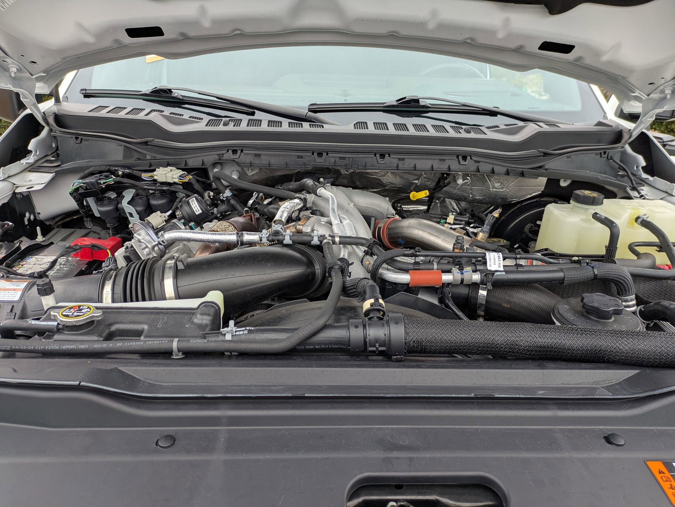 - ENGINE: 6.7L HIGH OUTPUT POWER STROKE V8 DIESEL -inc: Turbo diesel B20 manual push-button engine-exhaust braking Operator Commanded Regeneration (OCR) and intelligent oil-life monitor 34 Gallon Fuel Tank 3.31 Axle Ratio High Capacity 11.6" Axle Upgrade Package increased GCW and upgraded 11.6" axle Note: Salesperson's portfolio or trailer towing guide should be consulted for specific trailer towing or camper limits and corresponding required equipment axle ratios and model availability See supplemental reference for vehicle height consideration Dual 68 AH AGM 750 CCA Batteries
