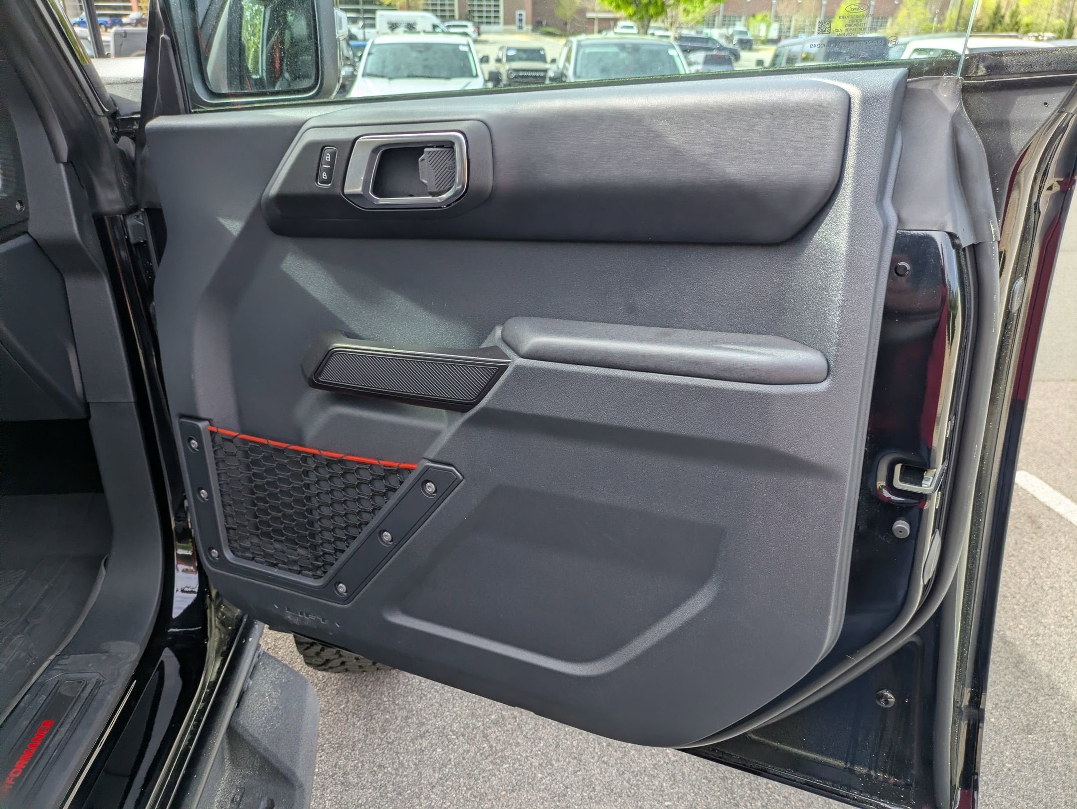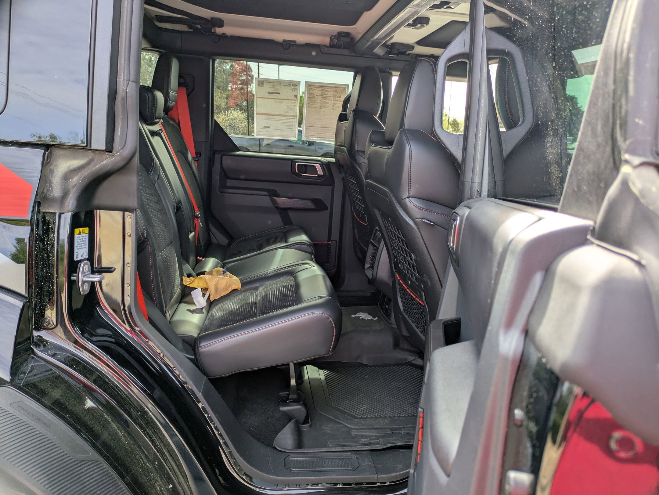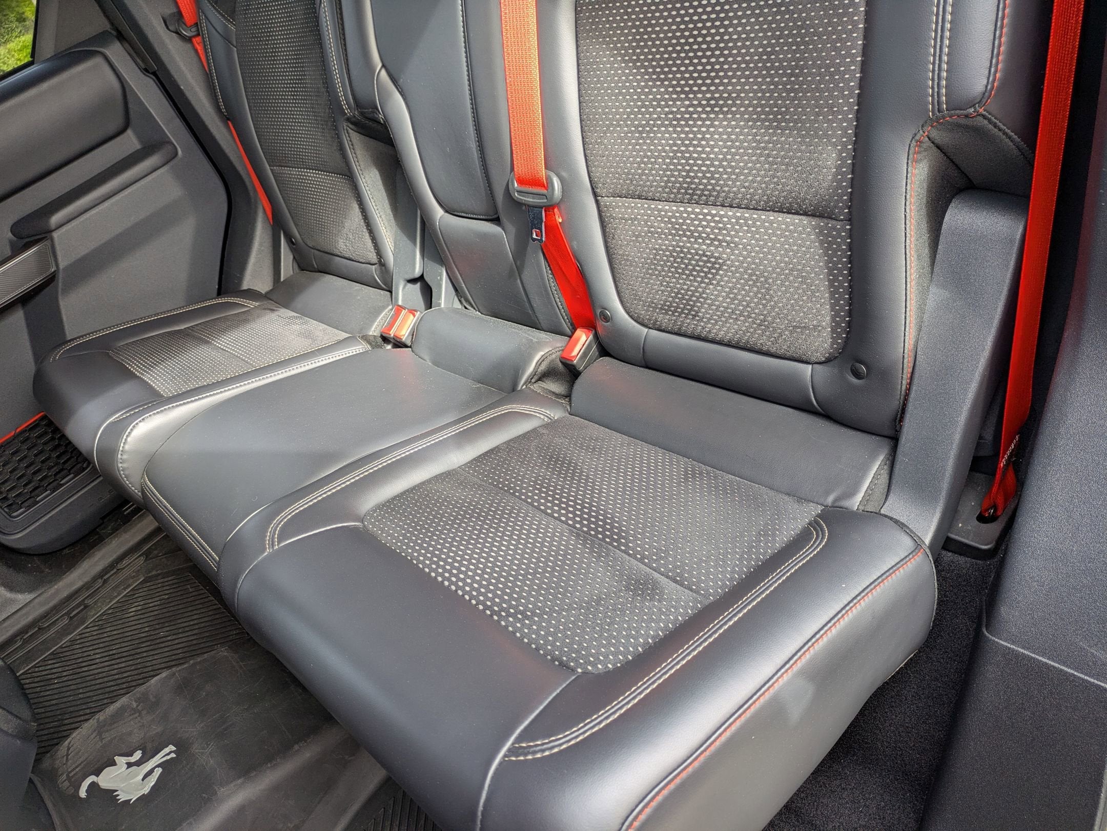 Leather-Trimmed/Suede Seats: Onyx seating featuring Code Orange seat belts.